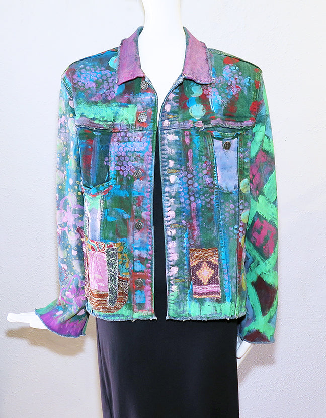 Living in Los Angeles, Alexis has been exposed to a rich design history of Modernist art and architecture, as well as many exhibitions of Latin American and Pre-Columbian art and Japanese art and design. All of these have contributed to her design aesthetic and continue to inspire her handpainted wearable art.