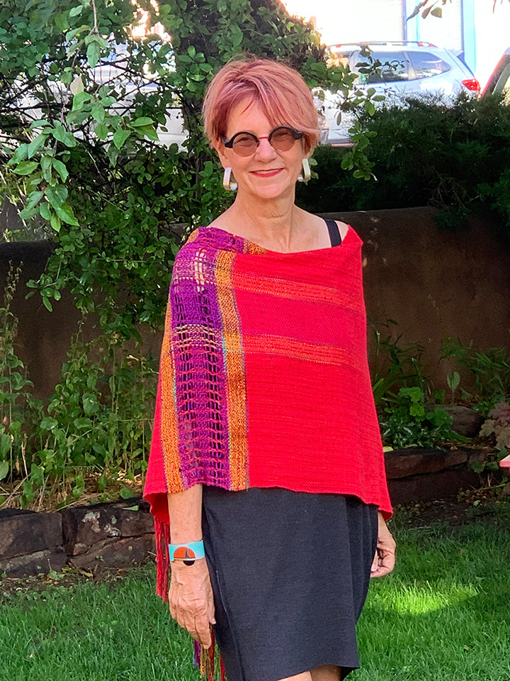 Ann Haile Carson is from Roswell, NM. She has studied extensively in Albuquerque and Santa Fe, NM, and has participated in juried art shows and exhibited in museums throughout the southwest. You will see the use of specialized techniques in her wearable designs, including Swedish transparencies, Swedish inlay, and lace weaves.
