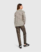 The Surfside Collared Sweater brings a refined twist to a cozy classic. With a smooth finish and foldover collar, this boxy silhouette adds elevation without compromising comfort. The neutral palette pairs effortlessly with denim, trousers, or layered over dresses for transitional wear. Relaxed fit from shoulders to hem. One size: 46" bust; 24" length; best for up to size 14. Lightweight 35% Viscose + 30% Polyamide + 30% Wool + 5% Cashmere. Hand wash cold, lay flat to dry