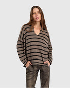 The Surfside Collared Sweater brings a refined twist to a cozy classic. With a smooth finish and foldover collar, this boxy silhouette adds elevation without compromising comfort. The neutral palette pairs effortlessly with denim, trousers, or layered over dresses for transitional wear. Relaxed fit from shoulders to hem. One size: 46" bust; 24" length; best for up to size 14. Lightweight 35% Viscose + 30% Polyamide + 30% Wool + 5% Cashmere. Hand wash cold, lay flat to dry
