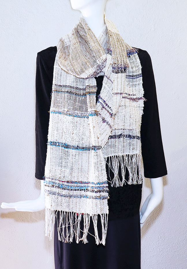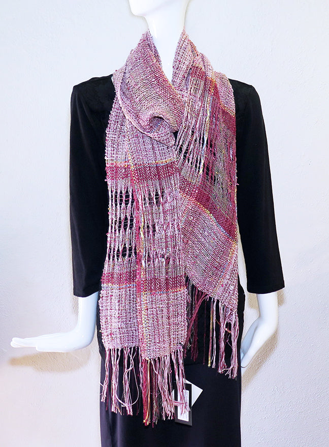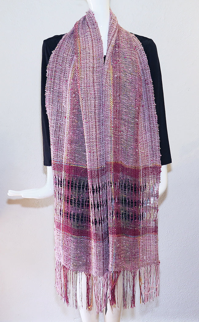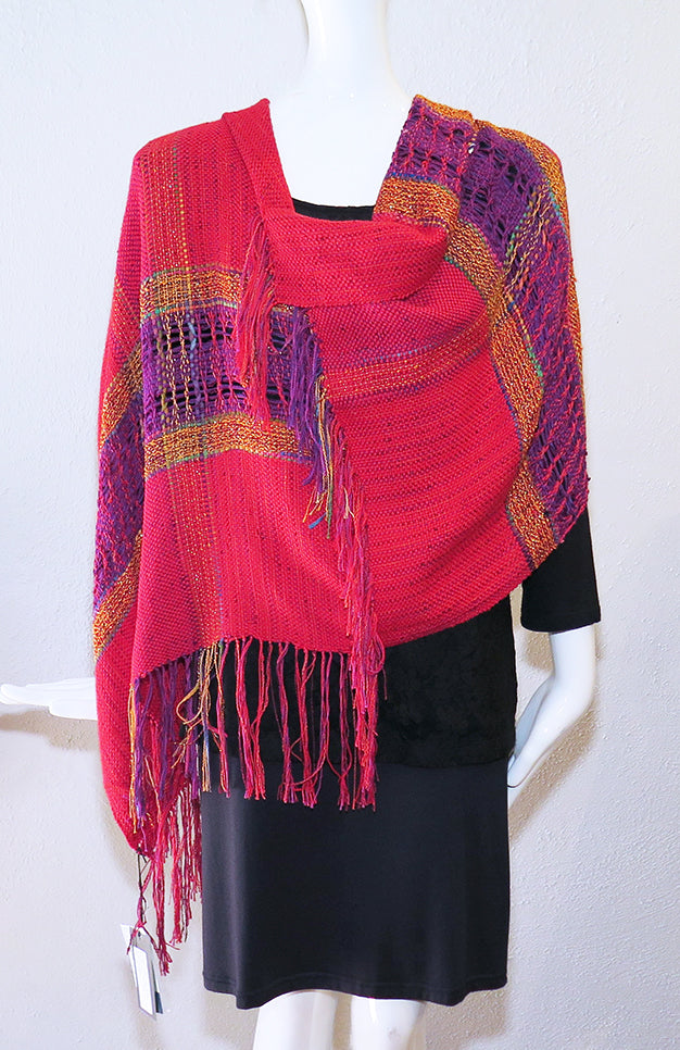 Ann Haile Carson is from Roswell, NM, and has been weaving since 1974. She studied extensively in Albuquerque and Santa Fe, NM, and has participated in juried art shows and exhibited in museums throughout the southwest. You will see the use of specialized techniques in her wearable designs, including Swedish transparencies, Swedish inlay, and lace weaves. Ann says about her weaving: "I try to create timeless garments using quality fibers that are not only beautiful, but make the wearer feel beautiful as well."
