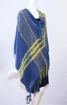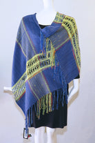 This lightweight manteau infinity wrap is a lovely medium weight combination of bamboo, silk, cotton and rayon slub fibers. Slip it over your head and choose the look you want • One size - blue/yellow