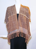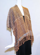 Cathy's handwoven jacket is a light and drapey mix of cotton, hand-dyed rayon metallic, ribbon, art yarn and mohair. Hand wash cold; hang to dry. One size: 23" long front lapel; 29" at sides and center back