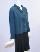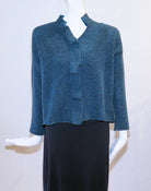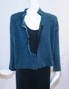 Cozy up your style with the GRIZAS hand knit wool cardigan in a warm teal shade. The frilled v-neck, loose boxy shape, dropped shoulder, long sleeves and soft merino wool make this cardigan irresistible. Hidden front zipper. 80% wool/20% polyamide; Hand wash, reshape and dry flat. Size XS - 40" bust; S - 42" bust; 20" long. Size recommendations for a relaxed fit.