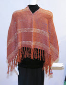 Sherry Gross at Loomstruck in Santa Fe uses natural fiber luxury yarns and chic embellishments in her handwoven, one-of-a-kind Saori weaving. This handwoven poncho style scarf is lightweight mix of mohair, wool and silk. The perfect topper for any outfit. Slip it over your head and find your favorite look. One size: 18" warp width; 27" side to side, including fringe. Dry clean recommended