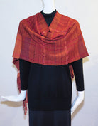 Sherry Gross at Loomstruck in Santa Fe has a love and fascination with color, texture, and novelty designs. She uses natural fiber luxury yarns and chic embellishments in her handwoven, one-of-a-kind art pieces. This handwoven shrug style poncho is a lightweight mix of merino, silk and alpaca on a cotton warp. Slip it over your head and find your favorite way to wear it. One size: 15" warp width; 37" side to side, including fringe; Dry Clean recommended.