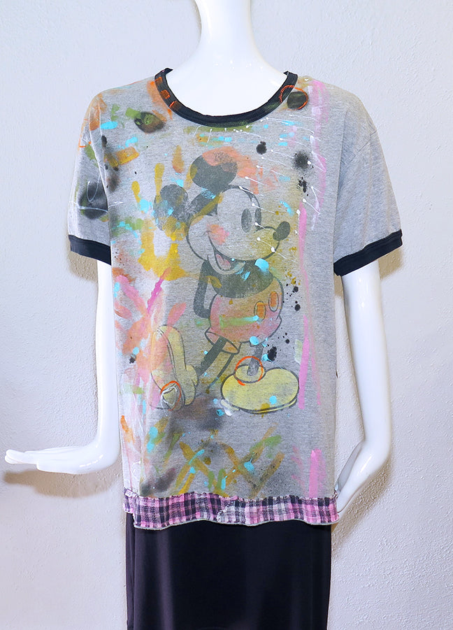 Kat's "Vintage Disney" cropped tee is part of the new Artee Tunic Collection. This one-of-a-kind upcycled vintage Disney Mickey Mouse tee is hand painted and has fun embellishments front and back • Size S/M - 38" bust; 26" overall length
