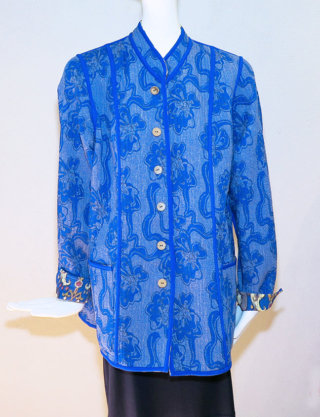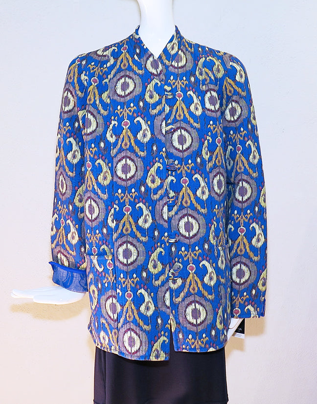Meredith travels to Uzbekistan to choose the fabrics for these jackets. Lovely medium weight quilted cotton with flattering princess seams, long sleeves, buttons and pockets on both sides. Nicely finished with attention to detail; Plus, they're REVERSIBLE -- which makes them great for travel. Size 54 - 46" bust; 27" overall length.