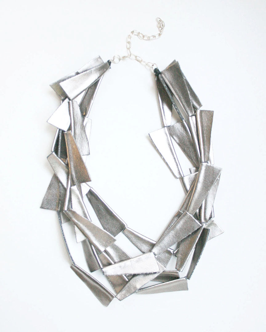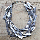 Blades recycled textile necklace. Colors may vary slightly due to availability of textiles. 24" - 28" Adjustable length. Available in pewter.
