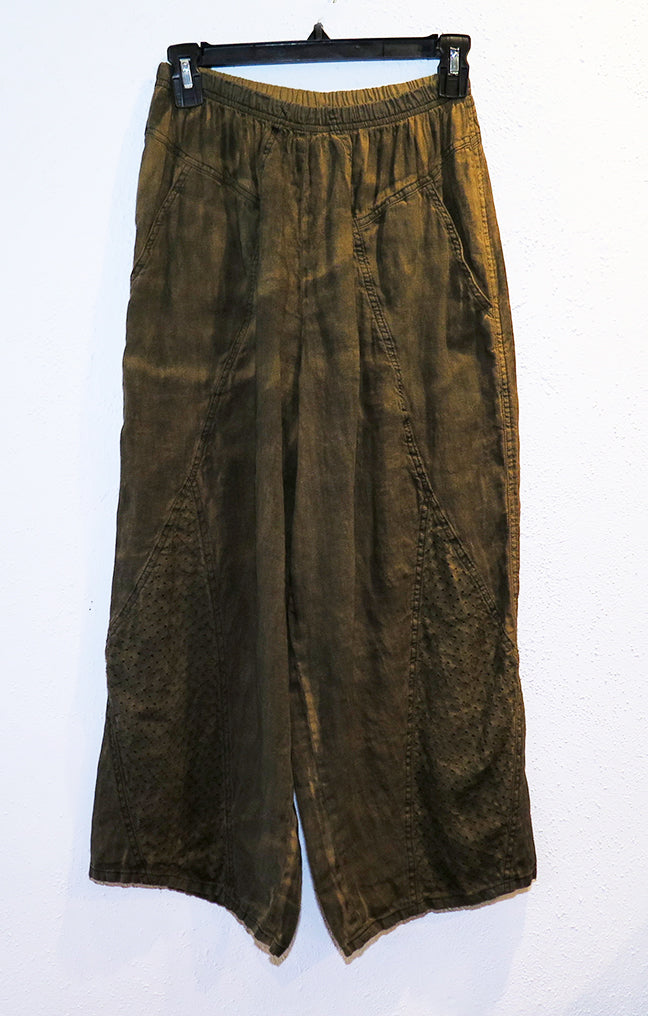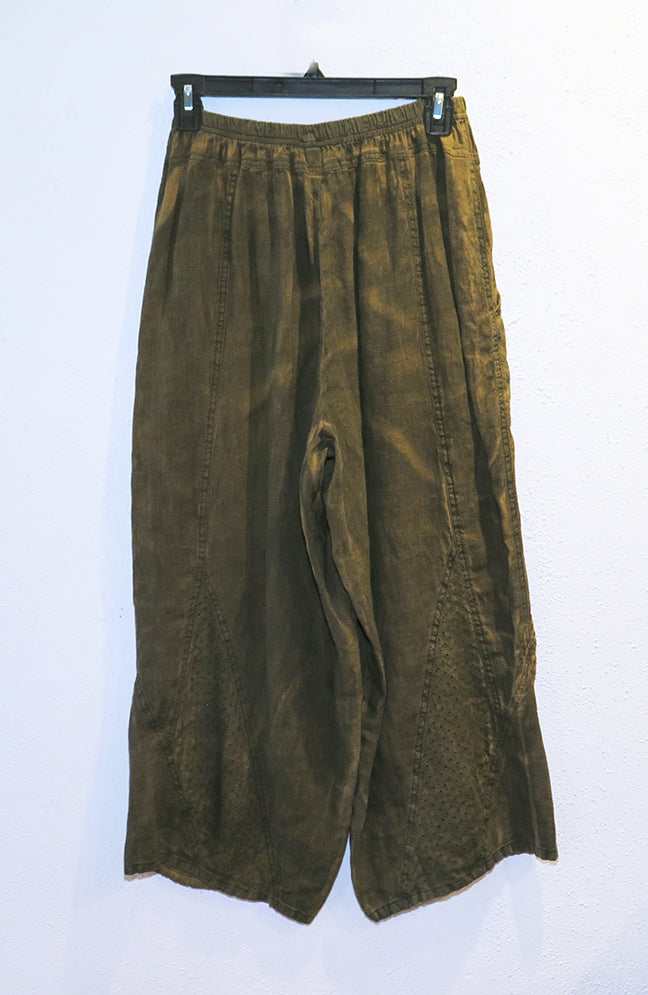 Breezy linen pants with textured panels, a comfy elastic waist, and handy front pockets—effortless style made easy. Classic fit with front pockets, straight leg and cropped length. 100% garment dyed linen. Size S - inseam 22".