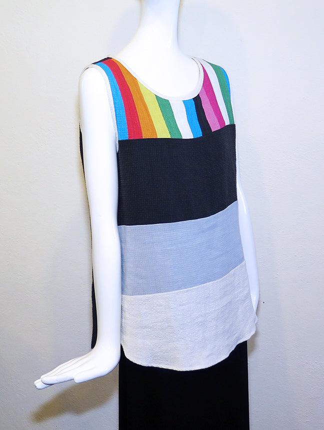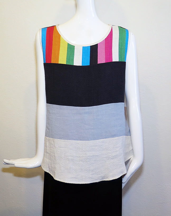 This cotton tank top is a breath of fresh air for any warm-weather wardrobe. Flattering fit with a rounded hem, colored panels and textured fabric that adds interest and makes it a great basic for travel. Machine wash. XS - 36" bust; S - 38" bust; M - 40" bust; L - 42" bust; 22" - 25" length