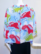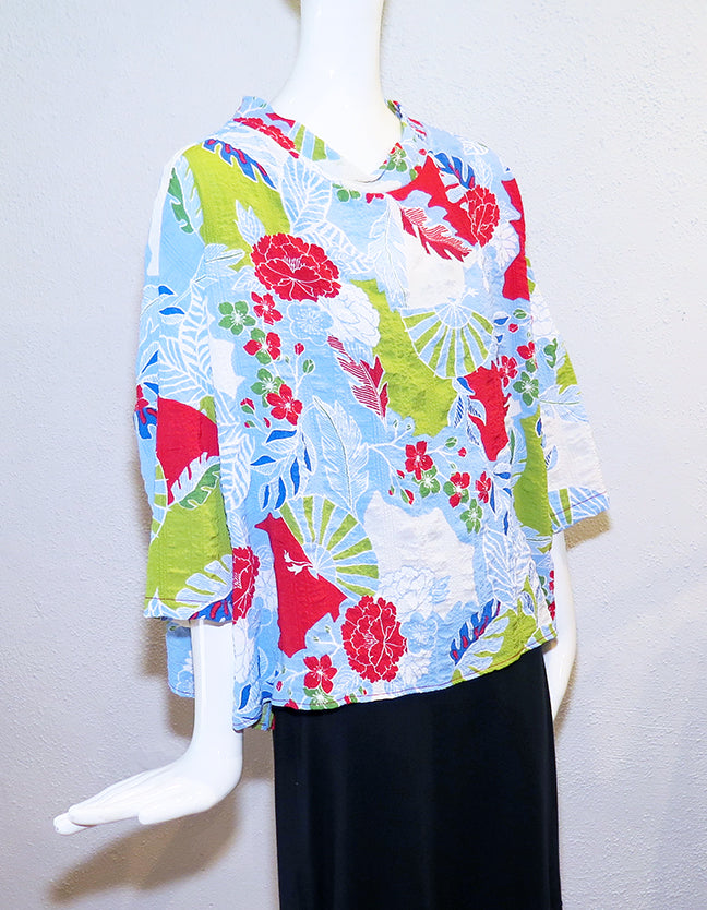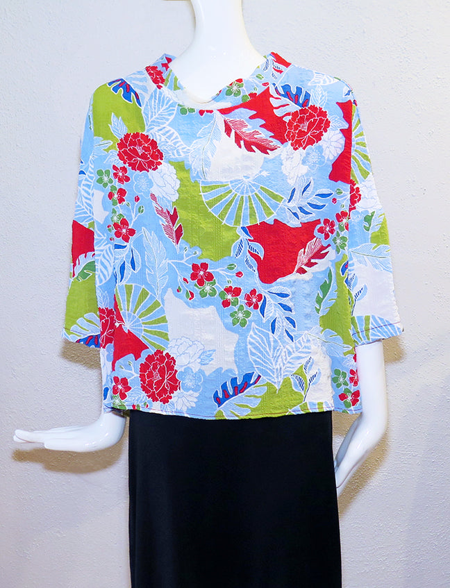 This abstract top from Moonlight offers elegance in an easy pullover style. Lightweight textured fabric with accent stitching, mock neck, off the shoulder 3/4 dolman style sleeves and 3" side slits. Easy care poly/spandex; machine wash, cold, gentle cycle; hang to dry. Made in the USA. S - 52" bust; M - 54" bust; L - 56" bust; 21" length; size recommendations are for a comfortable fit
