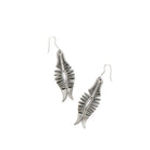 Laser cut silver leather; 3/4” wide and 2-1/4” long, stainless steel ear wire and components