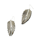 Lightweight off white earrings are crafted in metallic leather and laser cut to create ethereal feather-like plumes.