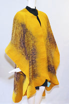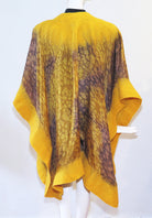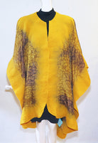 Fiber artist Vera Neel fuses hand dyed silk and wool to create the perfect combination of color and texture in her felted silk capes. This one-of-a-kind nuno-felted cape is one size: 88" wide x 42" long. Wear it as a cape or close the sides to make a jacket.