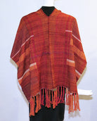 Sherry Gross at Loomstruck in Santa Fe has a love and fascination with color, texture, and novelty designs. She uses natural fiber luxury yarns and chic embellishments in her handwoven, one-of-a-kind art pieces. This handwoven shrug style poncho is a lightweight mix of merino, silk and alpaca on a cotton warp. Slip it over your head and find your favorite way to wear it. One size: 15" warp width; 37" side to side, including fringe; Dry Clean recommended.