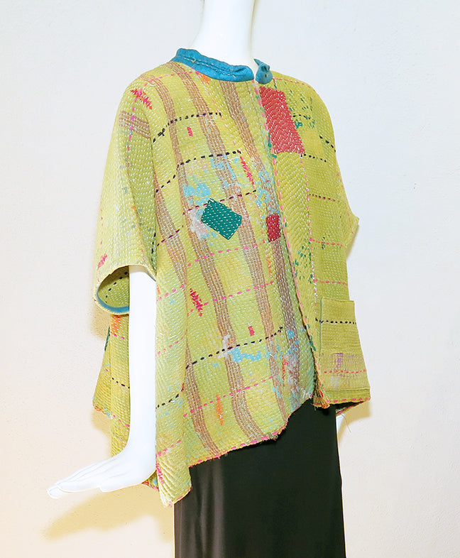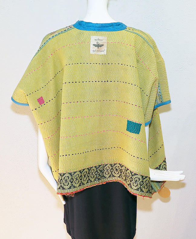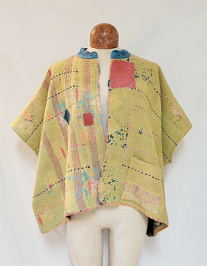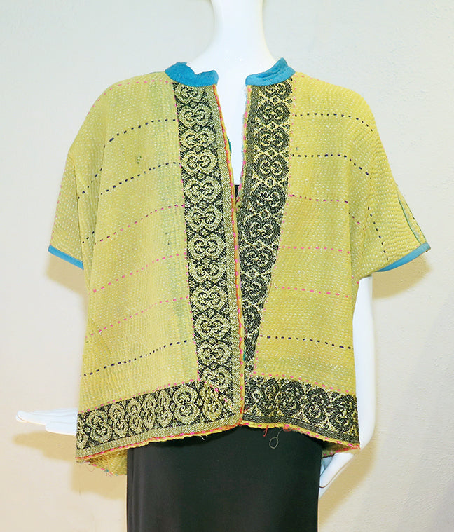 This lovely vest was made from a salvaged cotton Kantha quilt. It's a really pretty mustard yellow color, not too bright... kind of earthy.